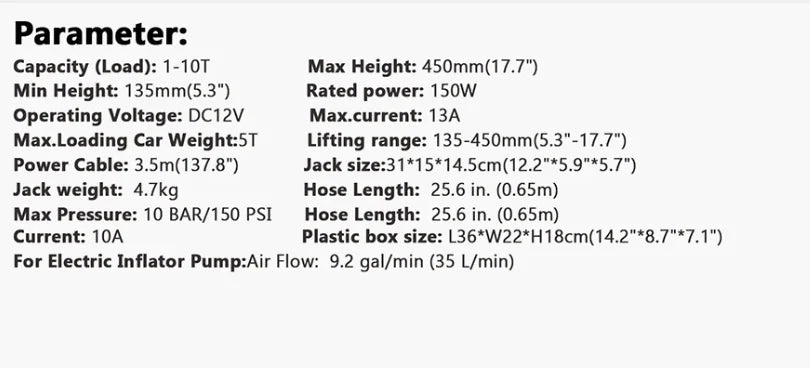 12V 5Ton Electric Car Hydraulic Jack with Tire Inflator Pump and LED Flashlight 3 in 1 Lift jacks With Safe Hammer Tools For Car
