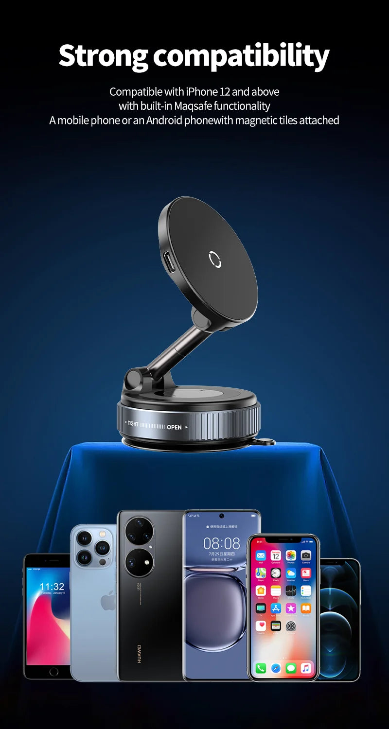 15W Magsafe Whiress Charger,With Vacuum Magnetic Suction Foldable 360°Rotating For iPhone Hands-Free For Driving Travel New