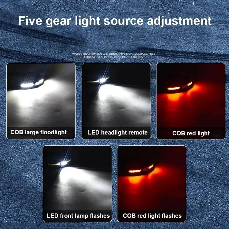 Powerful Portable COB Headlamp USB Rechargeable Red and White Light Work Light Outdoor Camping Fishing Floodlight Headlight
